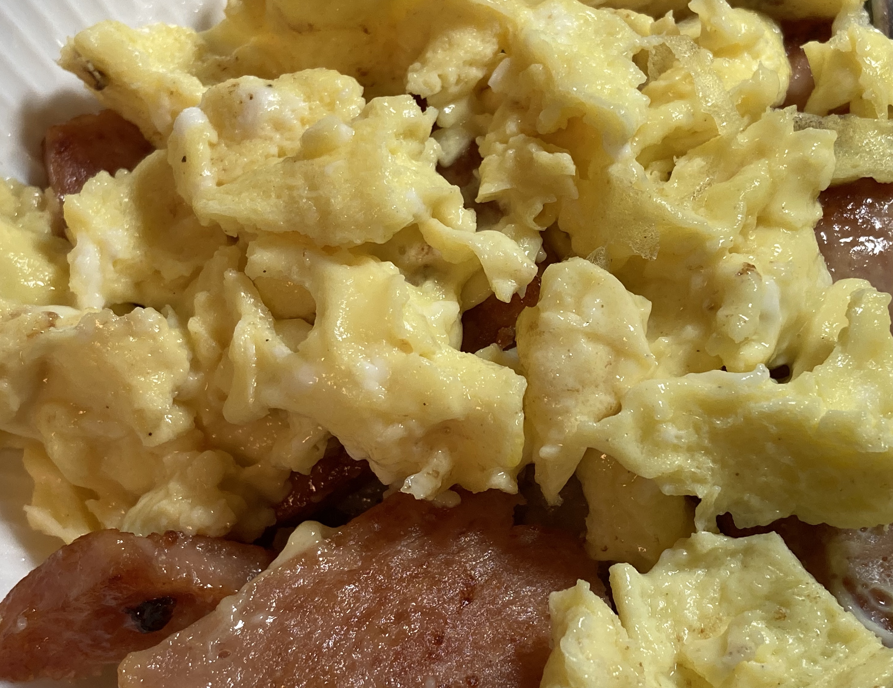곤약현미밥 반공기 + 라이트 스팸 + 스크램블에그