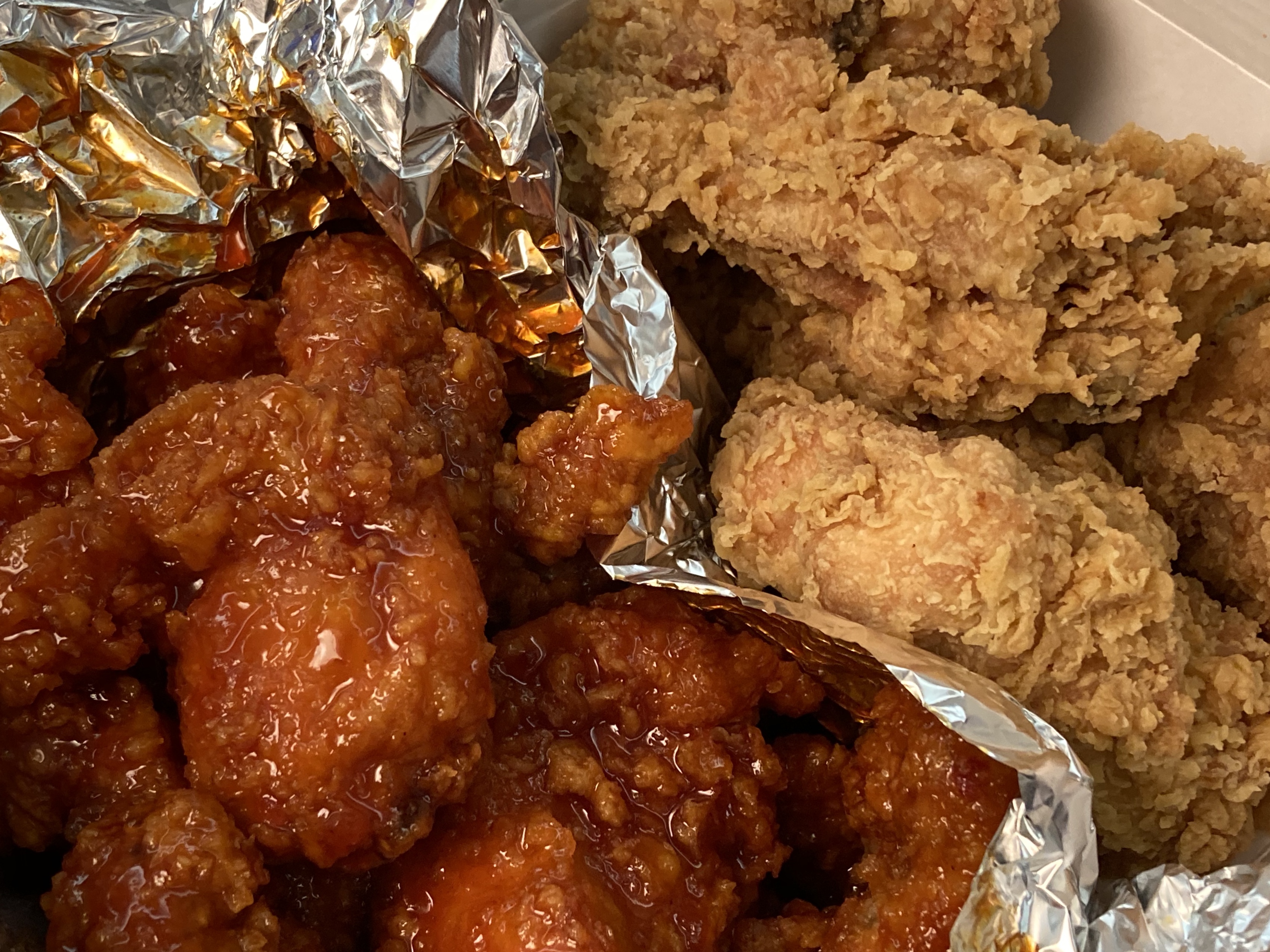 BBQ에서 후라이드랑 매운 양념 반반으로 시켰다.