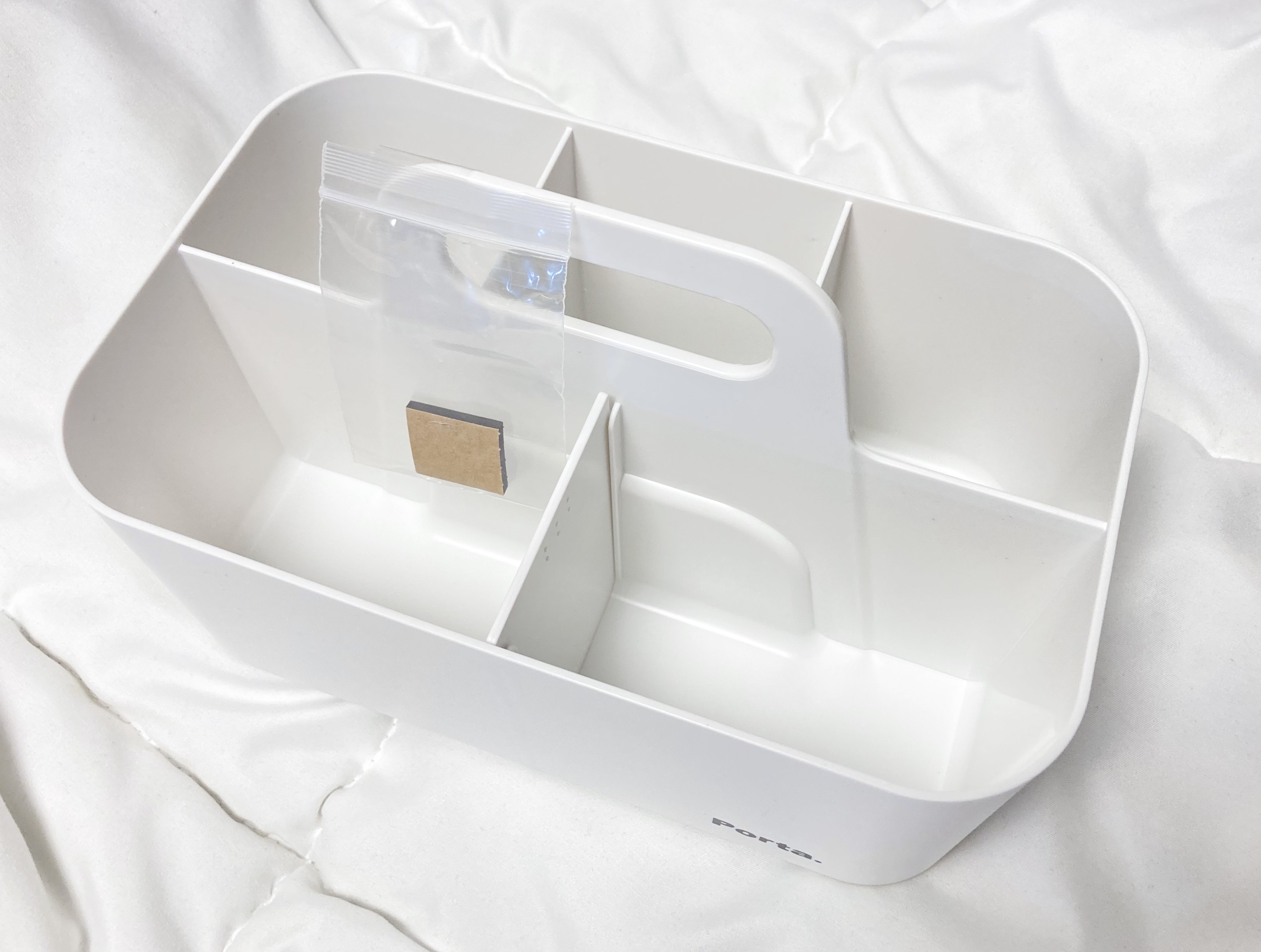 잡동사니가 가득한 책상을 정리하기 위해 정리함을 샀다.