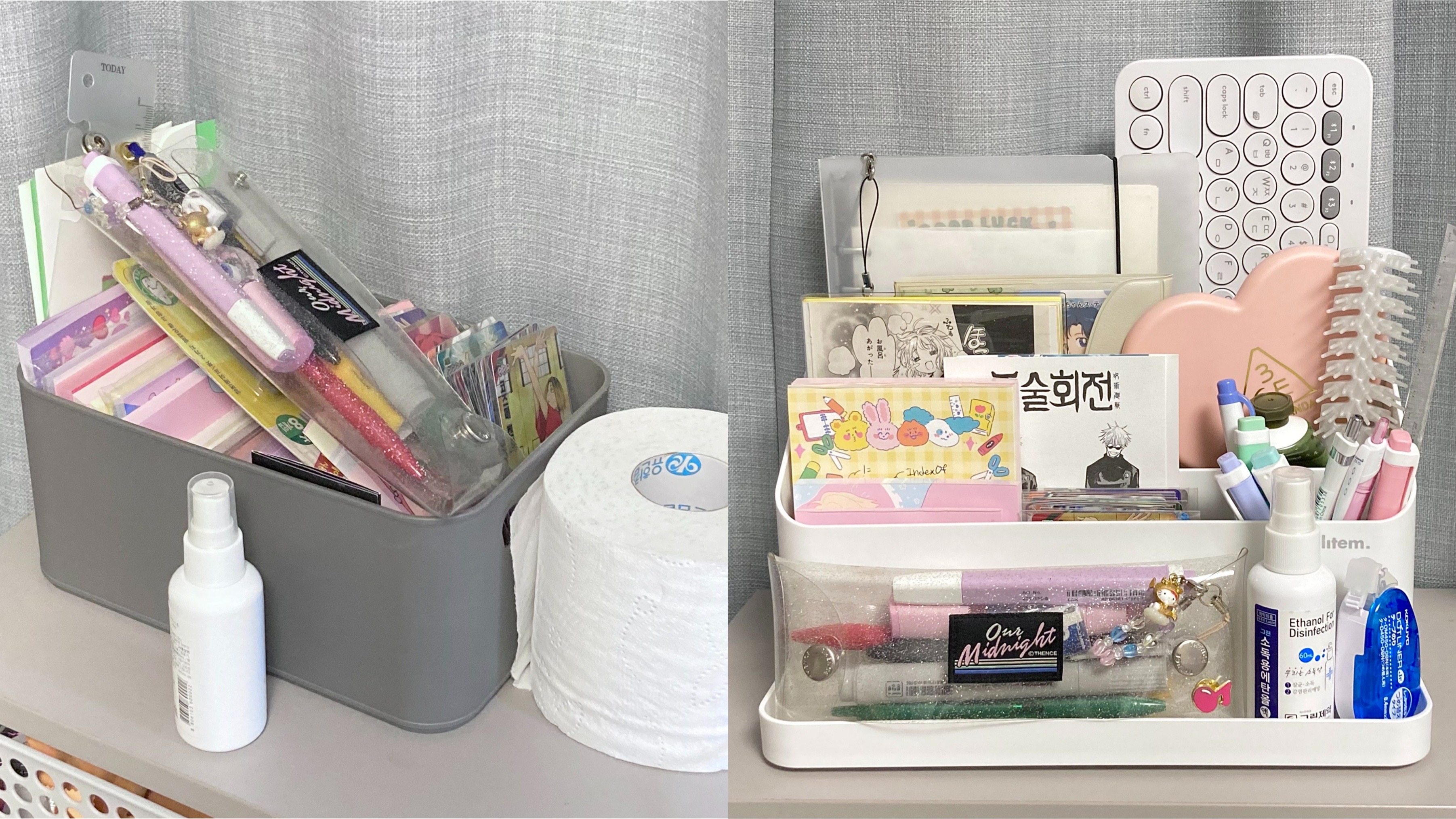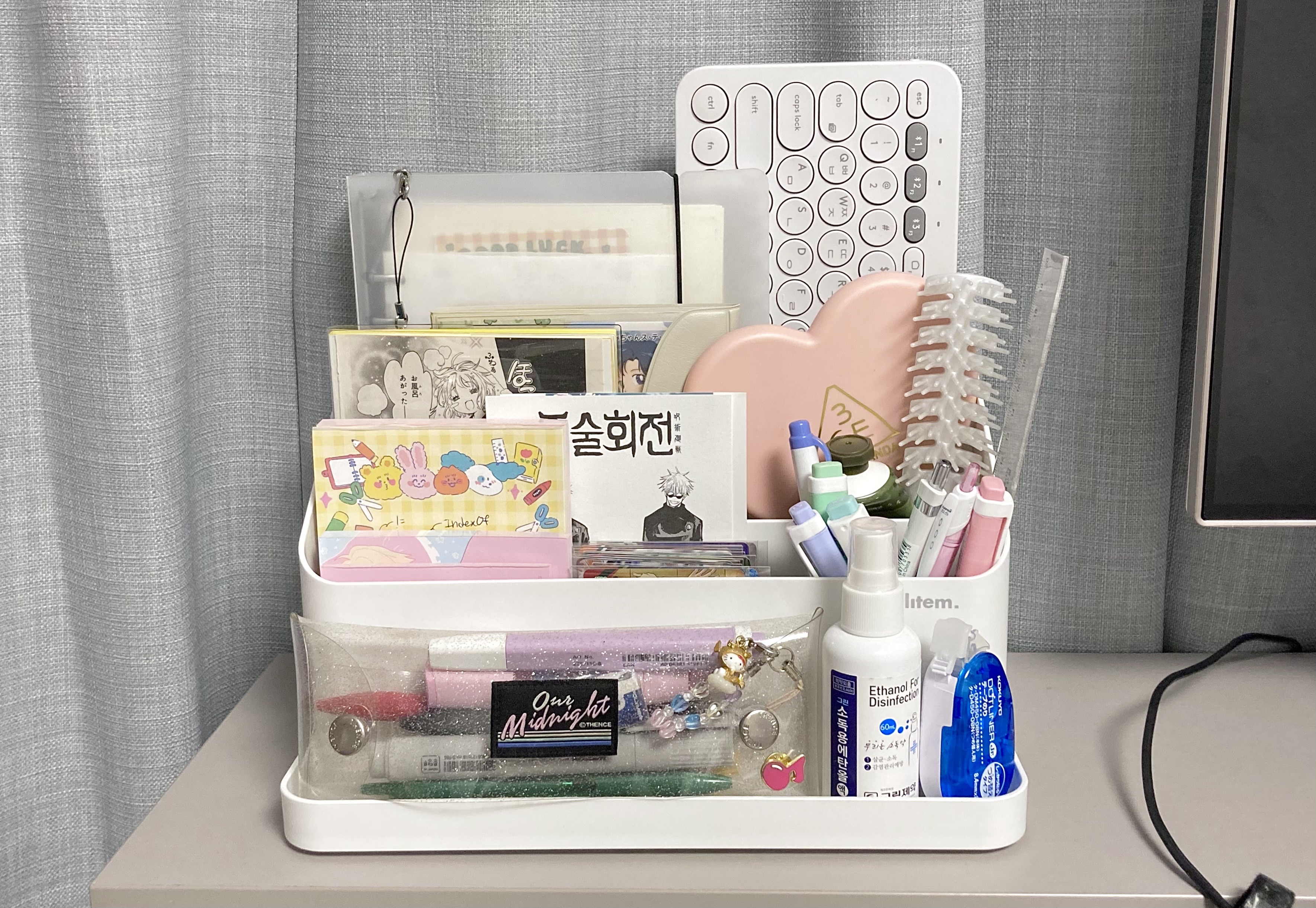지금은 필통이 있는 자리에 카드나 아크릴로 꾸며놨는데
